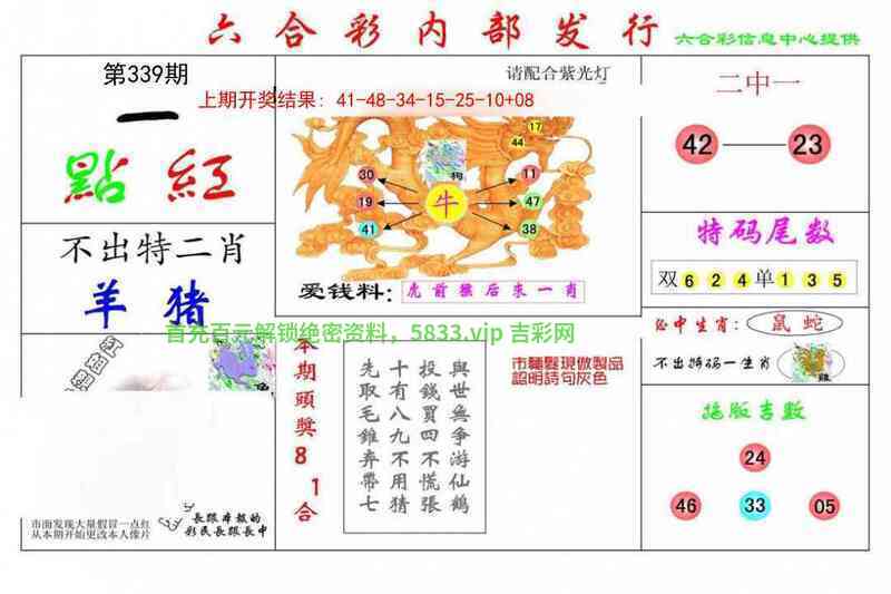 | 339期:天地+二肖〖地肖+龙猪〗开:马48错 |